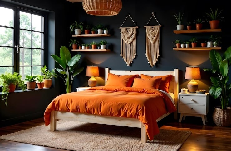 - Paint one of the walls orange and leave the rest white to prevent the overpowering brightness.
