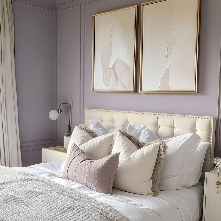 White and mauve taupe is a fancy mix of purity and class that fits in contemporary bedrooms.