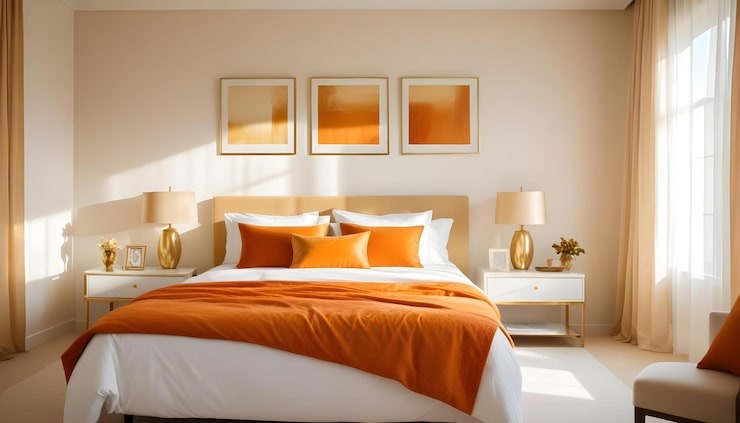 Quartier Studio Suggestion: Have Quartier Studio, which is among the top interior designers in Delhi NCR, create a well-balanced and vibrant design with the tasteful use of orange highlights.