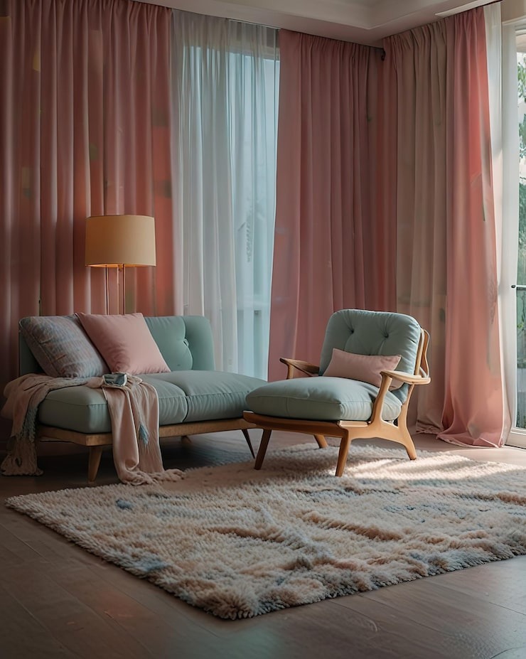 The final layer is the one that brings everything together, which is the use of rugs and curtains. They bring softness, warmth and comfort in interiors. When they are selected in the wrong way, they may interfere with balance and size and color are important.