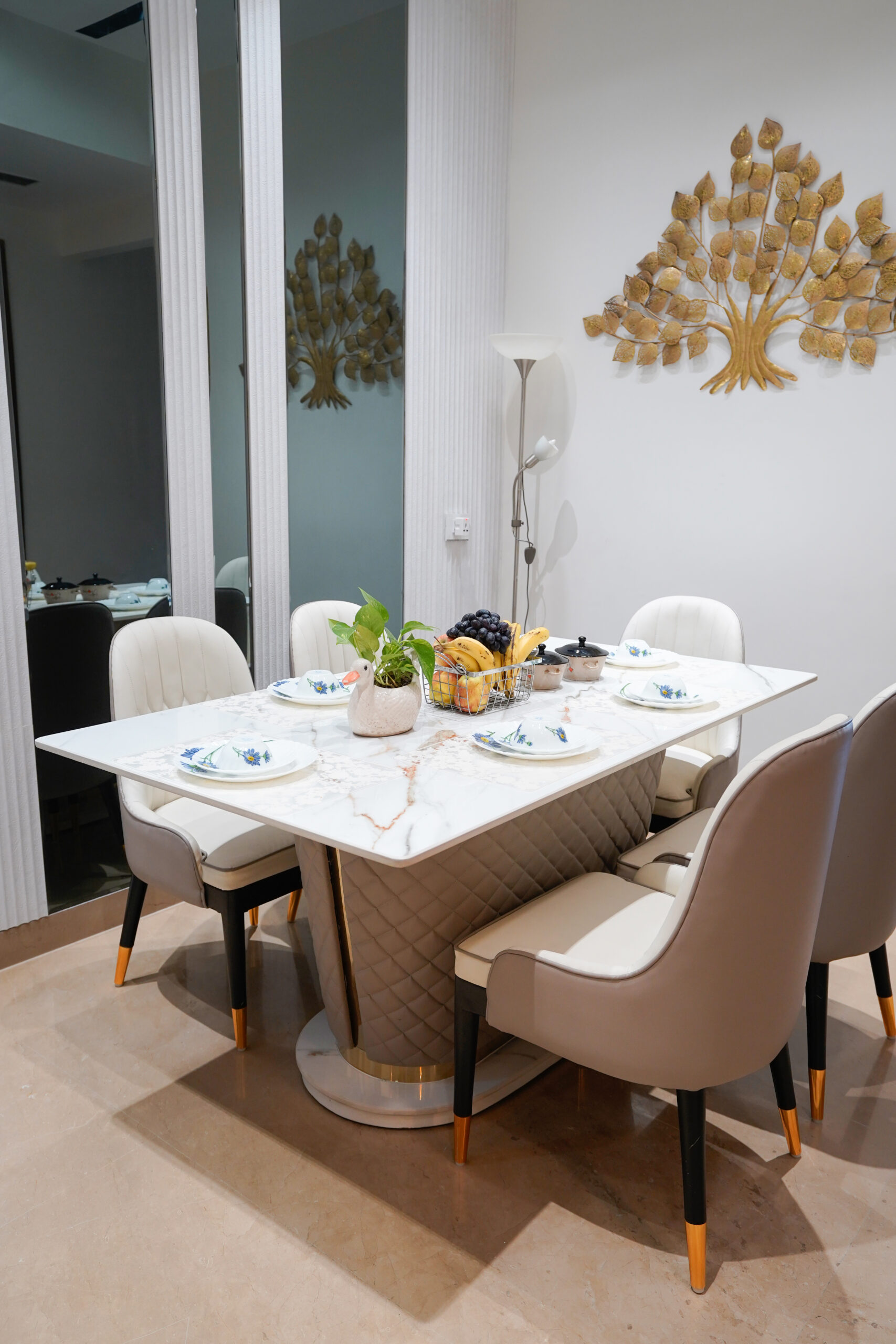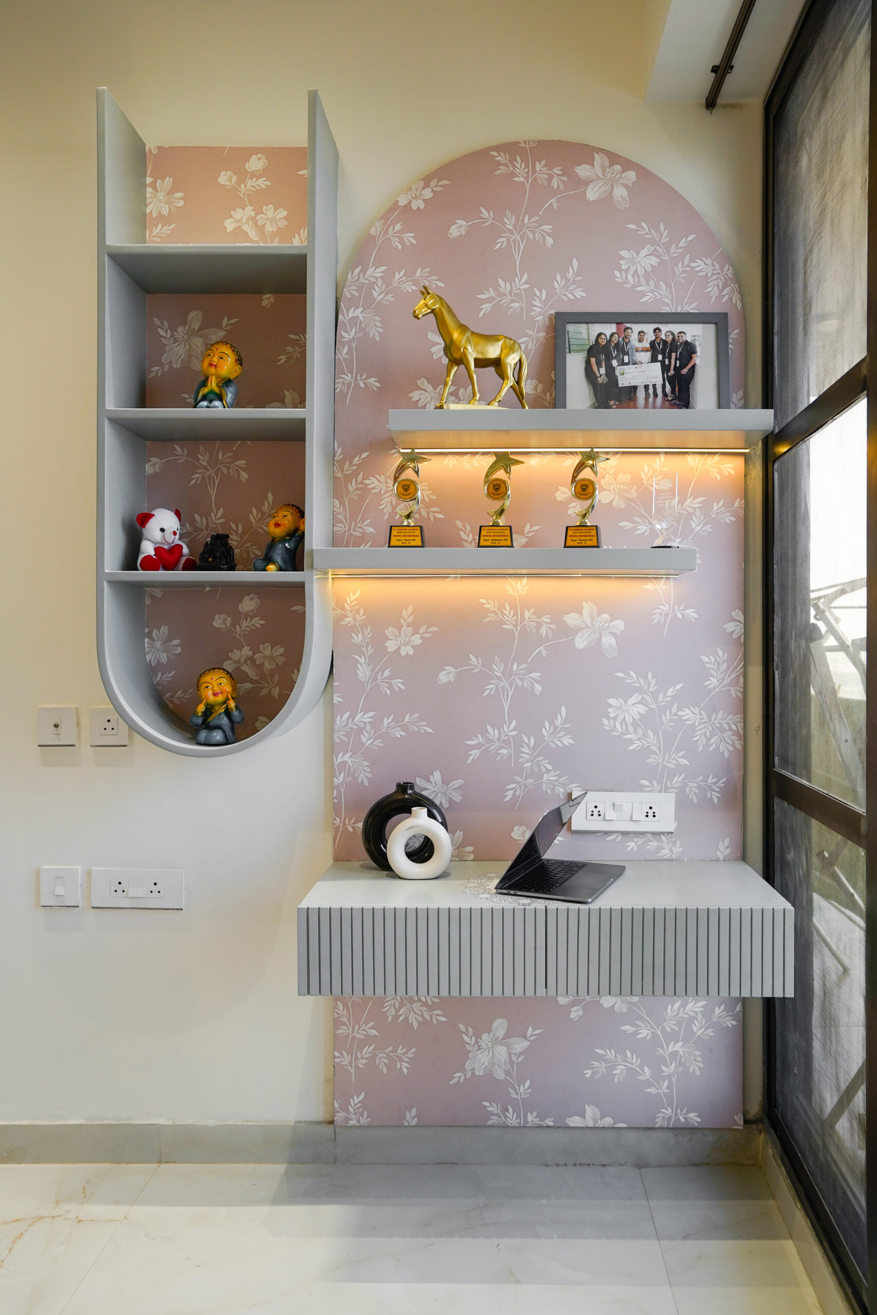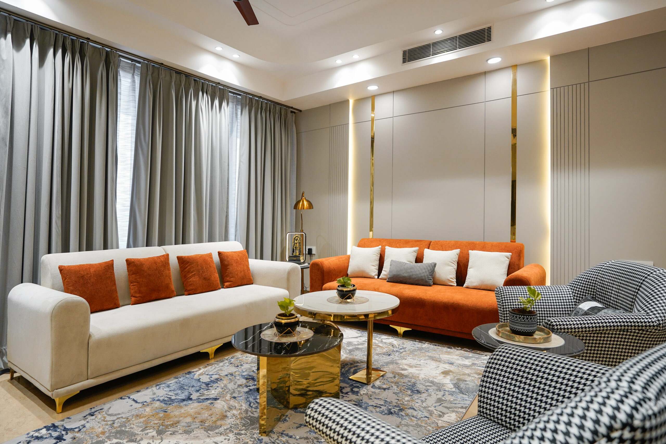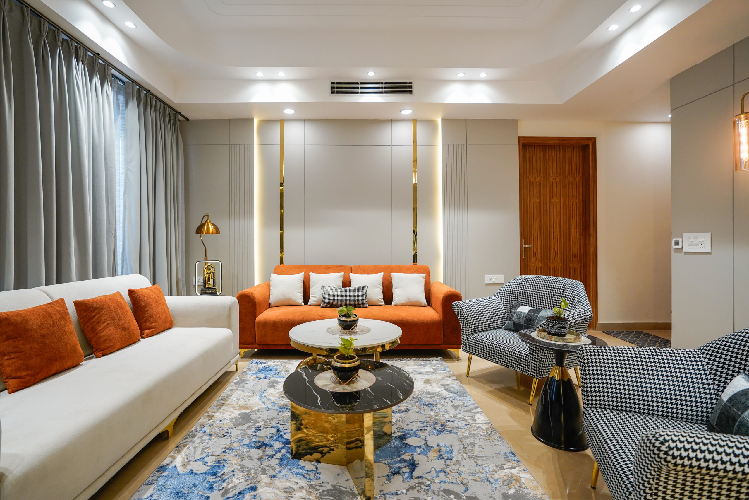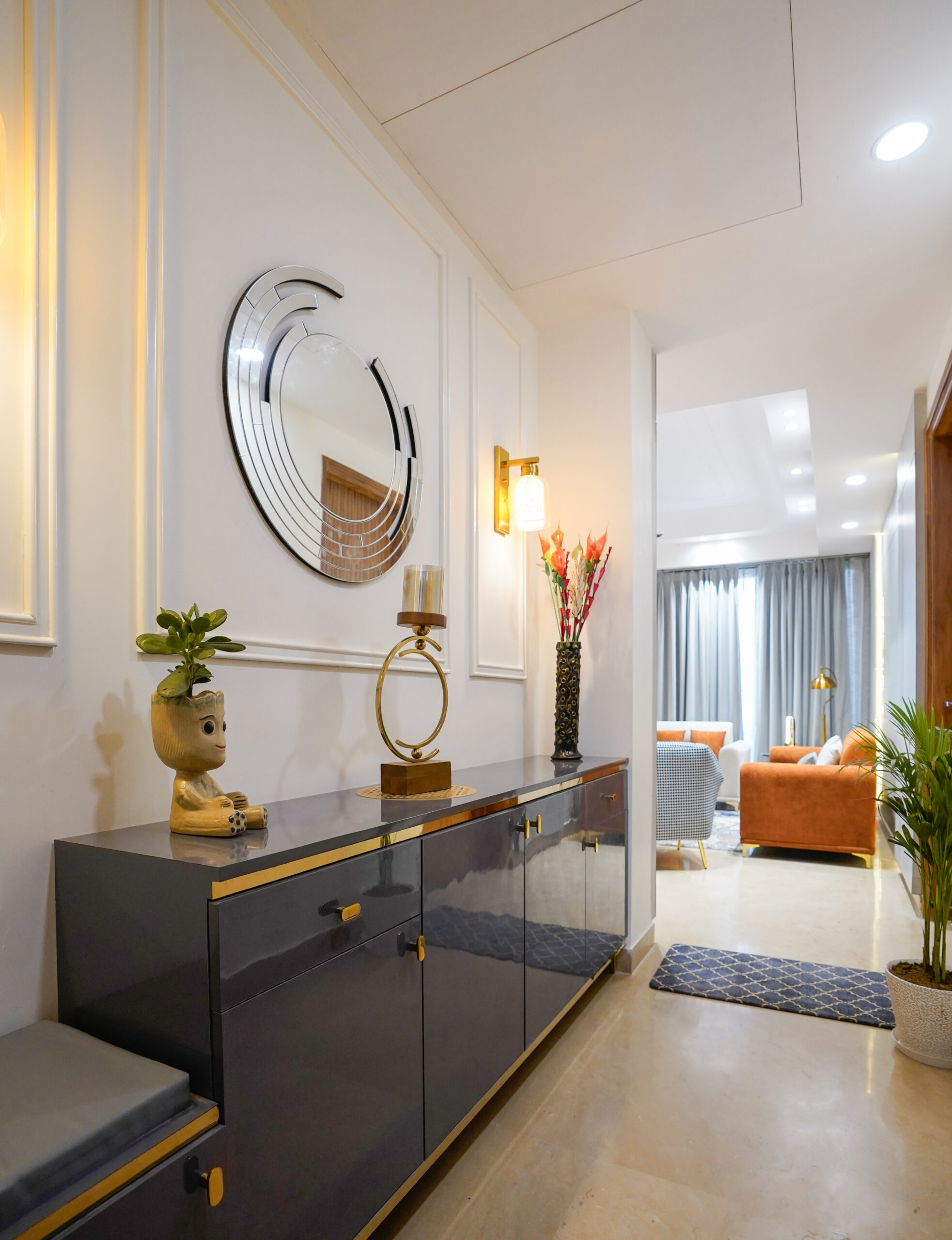 Our team holds high pride for the recently finished interior design work ar Apex D’rio, located in Indirapuram, Ghaziabad district Quartier Studio designers at our company carefully designed the 3BHK flat to achieve a sophisticated combination between contemporary design and comfort.